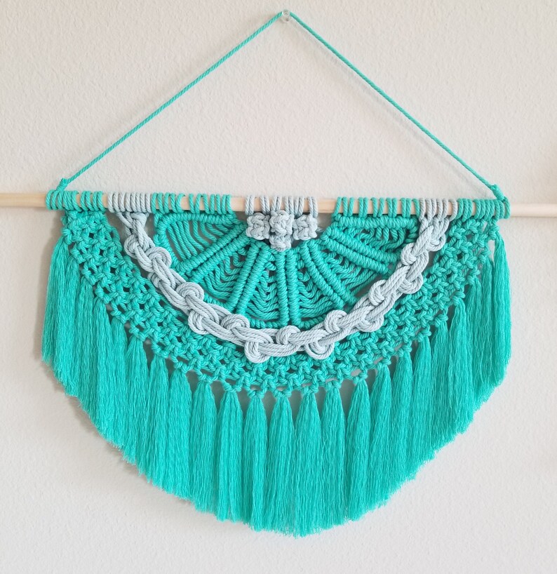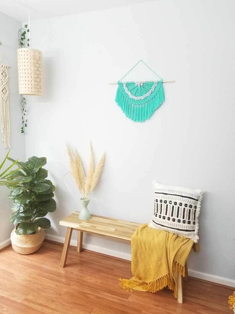 Semi circle Macrame Wall Hanging Fiber rope knot art | Etsy from i.etsystatic.com This is here a great looking boho wall hanging to crochet with acrylic medium weight 4 yarn. Dream catchers are a real boho symbol, so make lots and lots of them and hang inside and outside. It is used to make mats and baskets. Curtain or room divider, hanging chair, wall shelf, even a beautiful wedding decor. Macrame is a truly bohemian thing, so create macramé planter hangers and wall hangings for a playful touch. Diy macrame plant holder wall hanging. Diy hanging macrame planter (via whydontyoumakeme.com) a usual pillow can be spruced up with a macramé cover and some tassels. Use the 4mm crochet hook to hook up this boho wall hanging.
