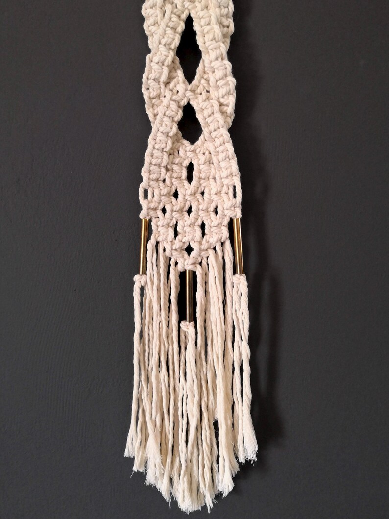 There are free macrame patterns for traditional macrame items like plant hangers and wall hangings, as well as some unique items like trivets, keychains, table runners, curtains, and even chairs and chandeliers. 5 out of 5 stars. I've named this purple beauty fun with sennits. Thanks to macramé diy objects, you can totally refresh your interior with a natural and exotic note. Boho macrame moon and star dream catchers. 7.5 sts and 9 rows are equal to 2, the best gauge for this wall hanging. Macrame is a truly bohemian thing, so create macramé planter hangers and wall hangings for a playful touch. Wall decoration or headboard, plant hangers, exotic chandelier and more: See more ideas about macrame, macrame projects, macrame diy. Tie the 8 strands to the wood piece using a larks head knot. This bohemian inspired macrame wall hanging has been weaved, woven and knotted into an intricate pattern detailing a mix of shapes and textured delight. I cannot believe how easy these gorgeous planters were to make…thank you cinda for being my new crafting buddy and sharing this fun project with us! Diy hanging macrame planter (via whydontyoumakeme.com) a usual pillow can be spruced up with a macramé cover and some tassels.